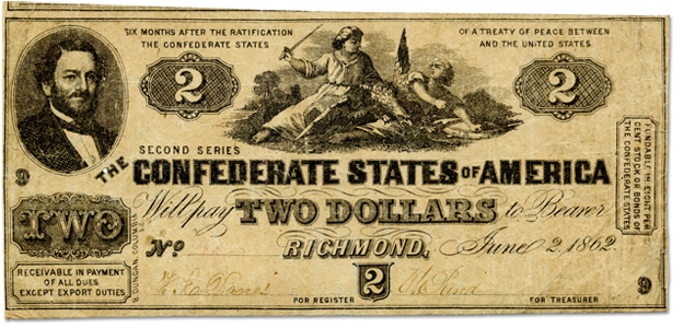 Банкнота Конфедерации образца 1862 года с портретом Йехуды Бенджамина